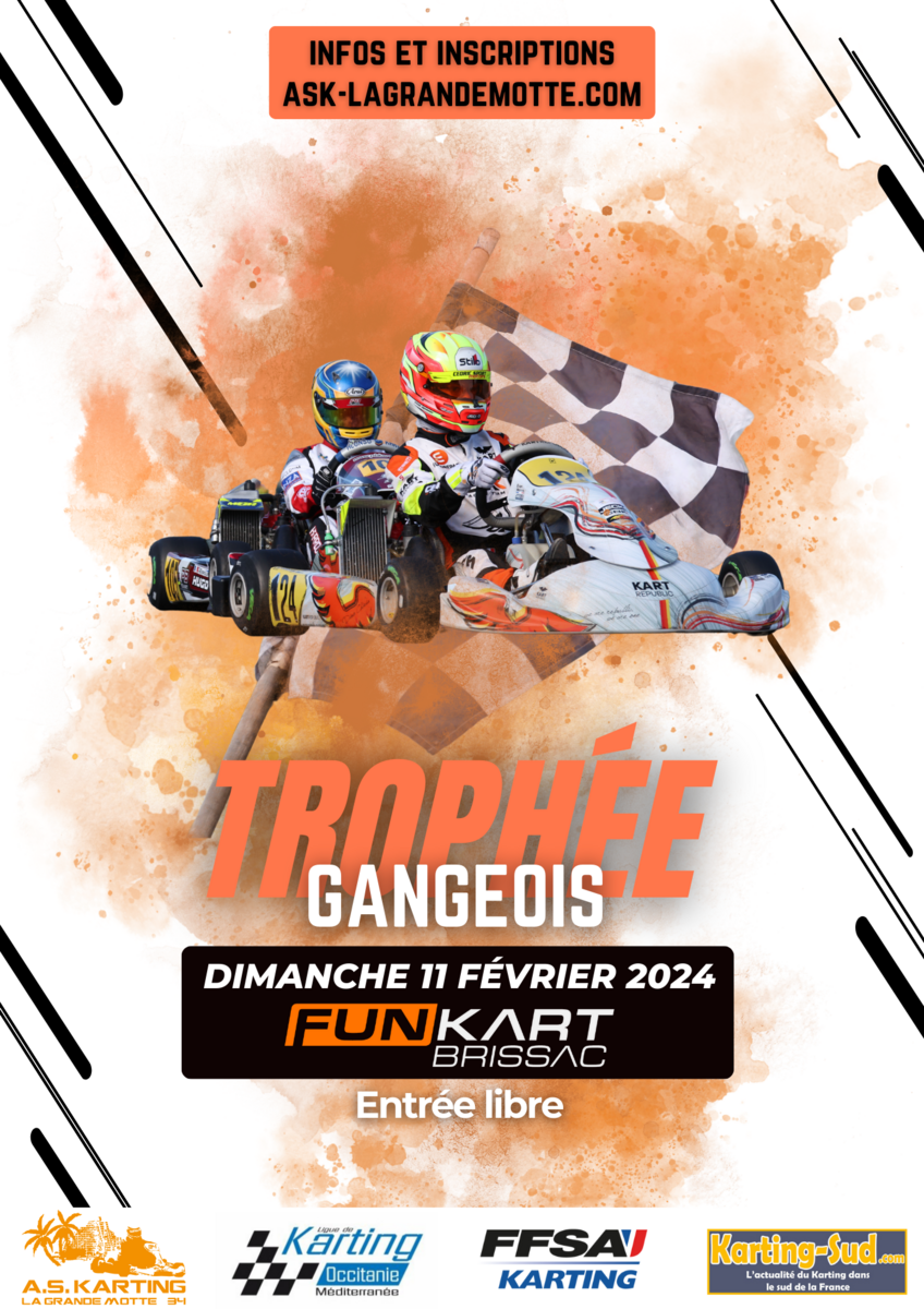 Retrouver notre pilote ALEXANDRE MIOT le dimanche 21 avril 2024 sur le circuit de " FUN KART BRISSAC " a GANGES (34) pour une course club en préparation a la course de ligue du championnat du sud qui se déroulera sur cette même piste les 27 et 28 avril 2024 .